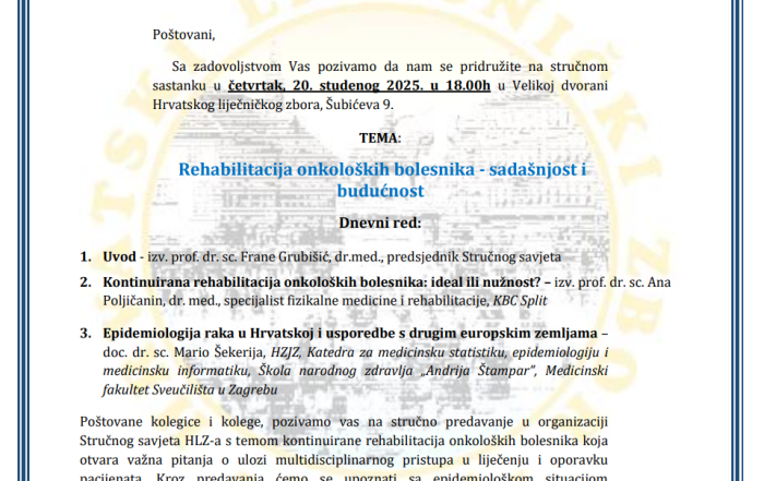 Dana 14. listopada 2025. predsjednik Hrvatskoga liječničkog zbora prof. dr. sc. Željko Krznarić primio je prof. dr. sc. Dragana Primorca, […]