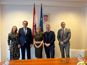 S lijeva na desno: Iva Ivanković državna tajnica MZOM, Radovan Fuchs ministar MZOM, Dijana Mandić ravnateljica uprave za visoko obrazovanje, Željko Krznarić predsjednik Hrvatskoga liječničkog zbora, Božo Pavičin savjetnik ministra