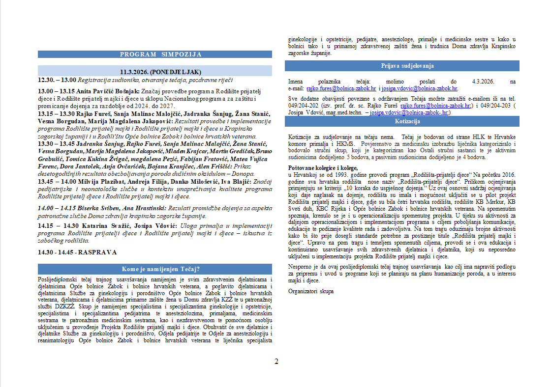 PREDAVANJE KRAPINSKO ZAGORSKE PODRUŽNICE HLZ – 11.03.2026. U 13H – Opća bolnica Zabok i bolnica hrvatskih veterana – Siva dvorana