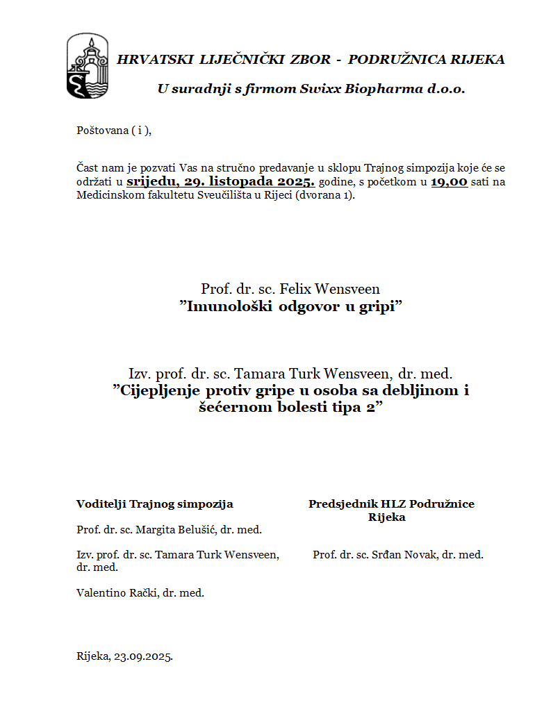 PREDAVANJE PODRUŽNICE RIJEKA HLZ – 29.10.2025. U 19H – Medicinskom fakultetu Sveučilišta u Rijeci (dvorana 1)
