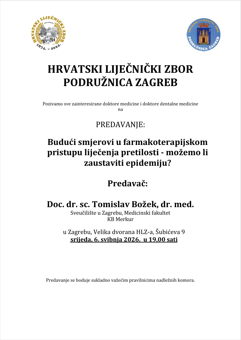PREDAVANJE PODRUŽNICE ZAGREB – SRI 06.05.2026. U 19H – VELIKA DVORANA HLZ